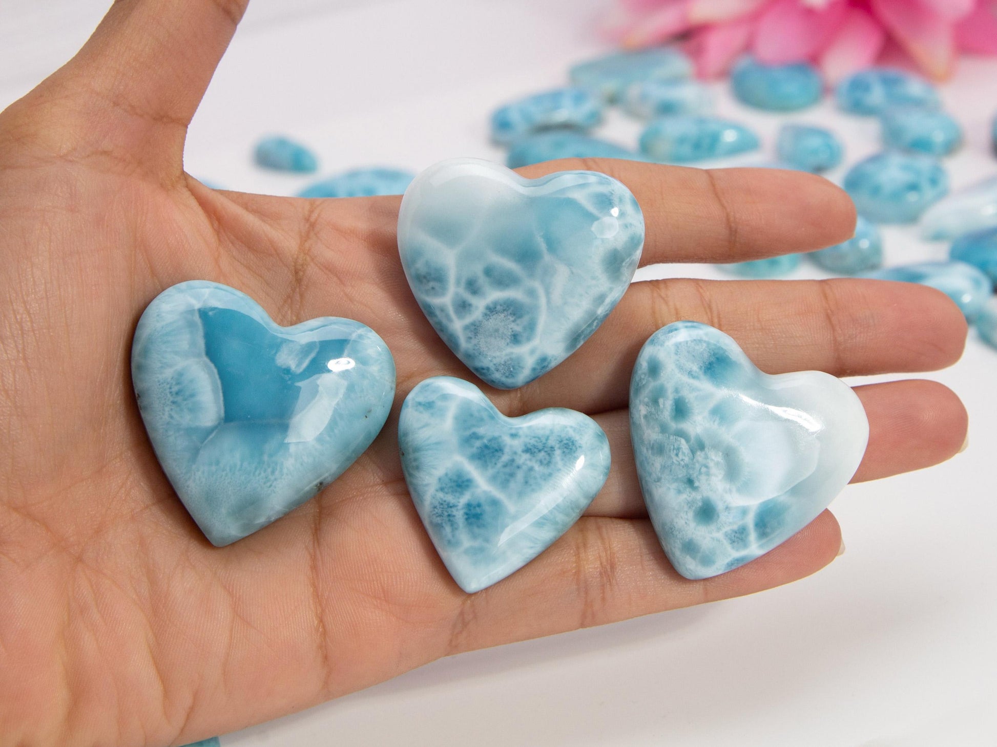 Cœurs de larimar, cœur naturel, cabochon de cœur de larimar AAA, cadeau de Noël