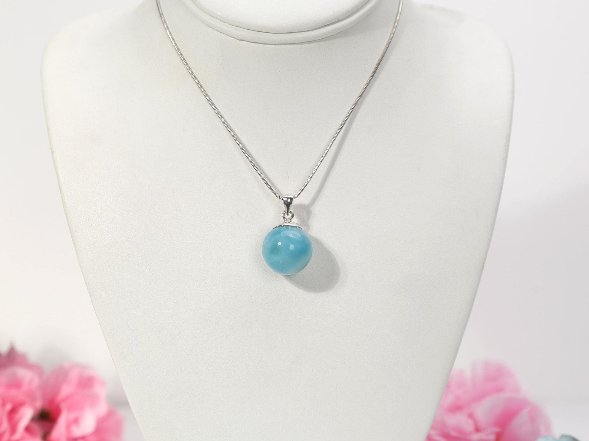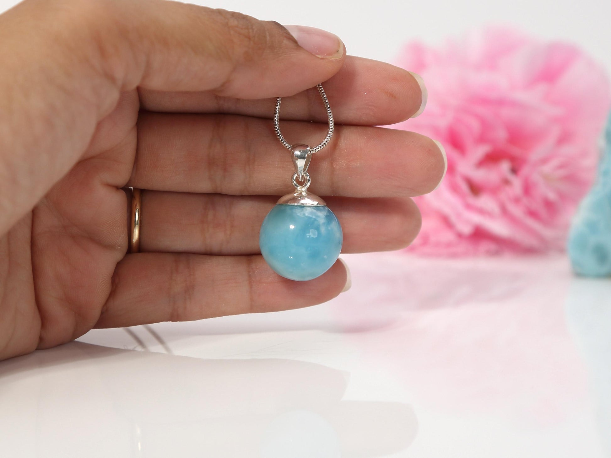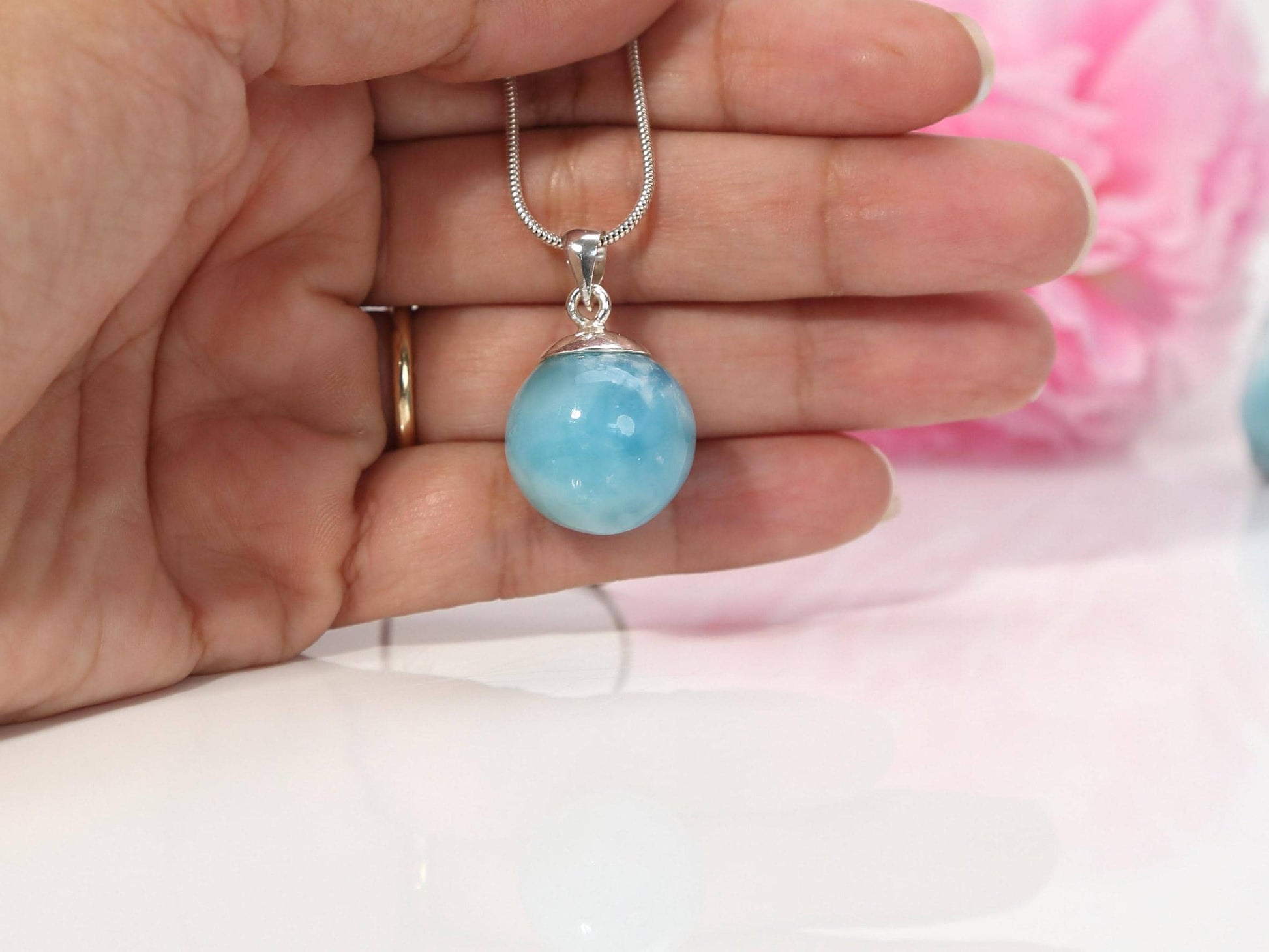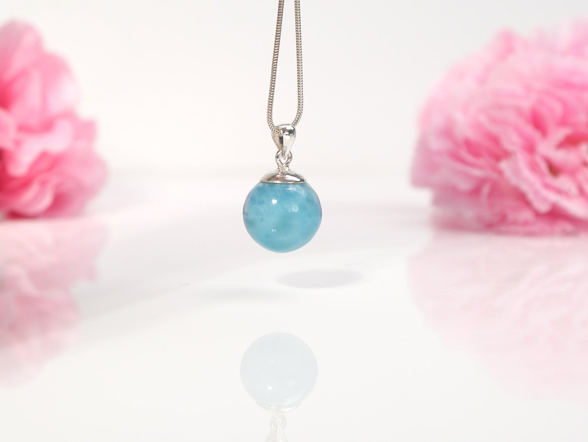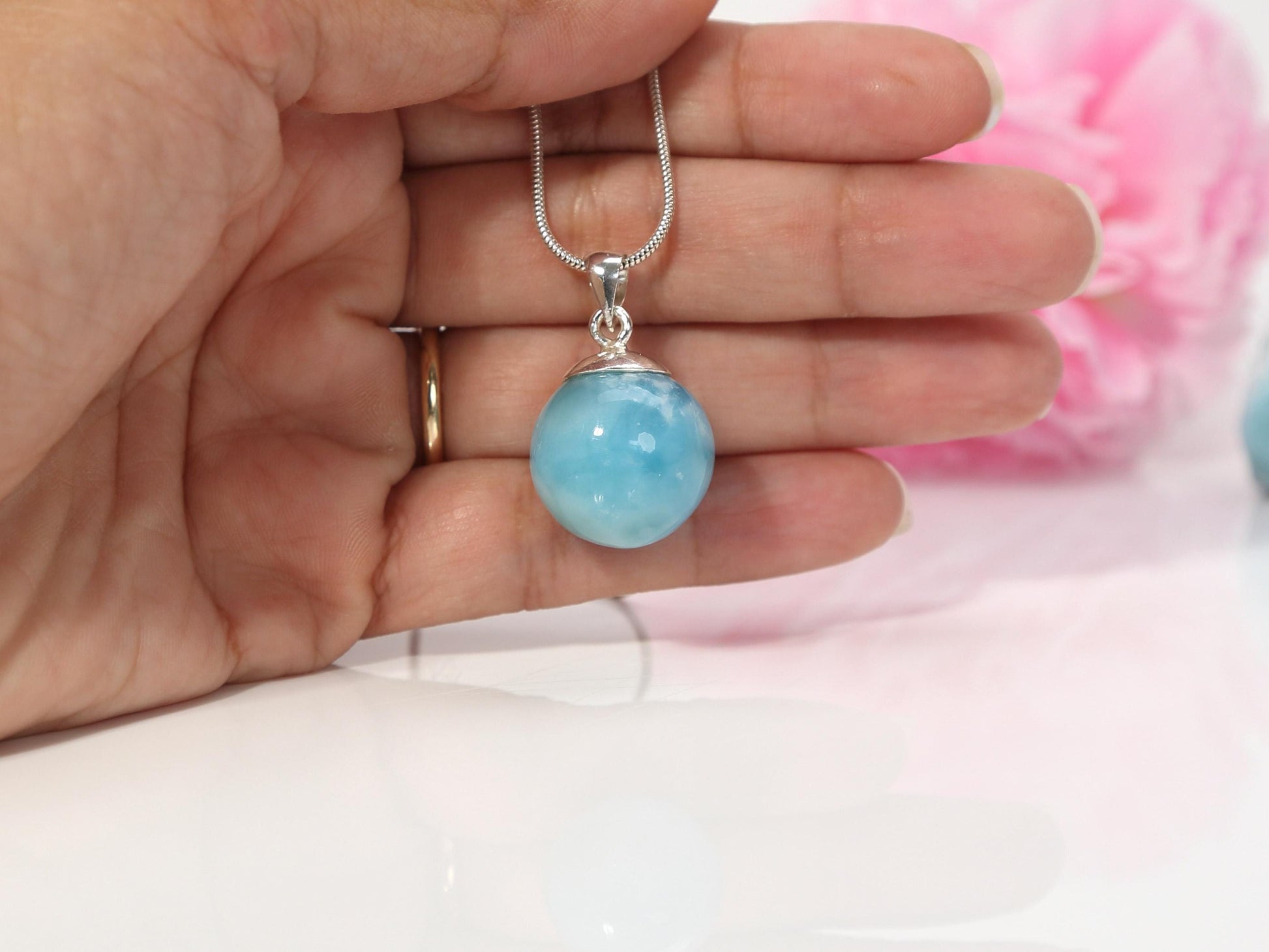 Pendentif sphère en larimar : Collier en argent sterling AAA et larimar, bijou idéal pour Noël