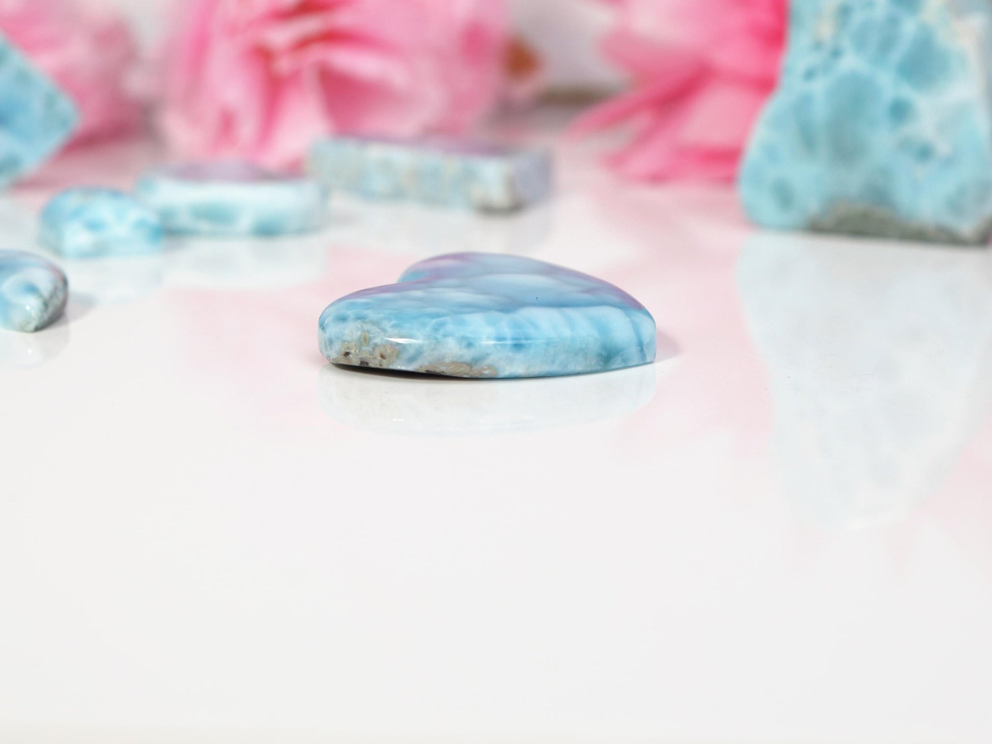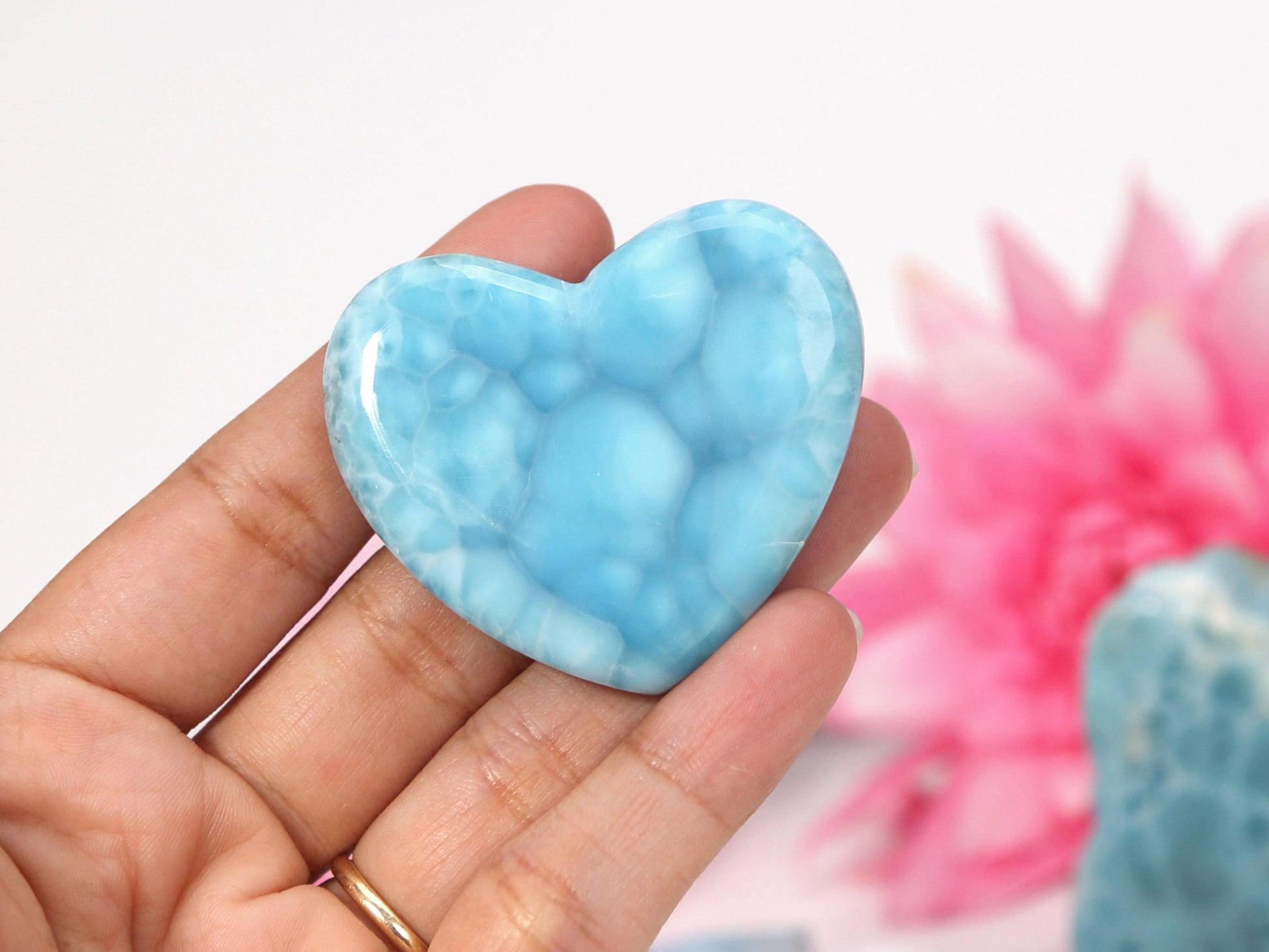 Cerulean-Blue Larimar Heart, Larimar Stone Heart Cabochon, Larimar Palm Stone, Super Blue Larimar crystal, Christmas gift