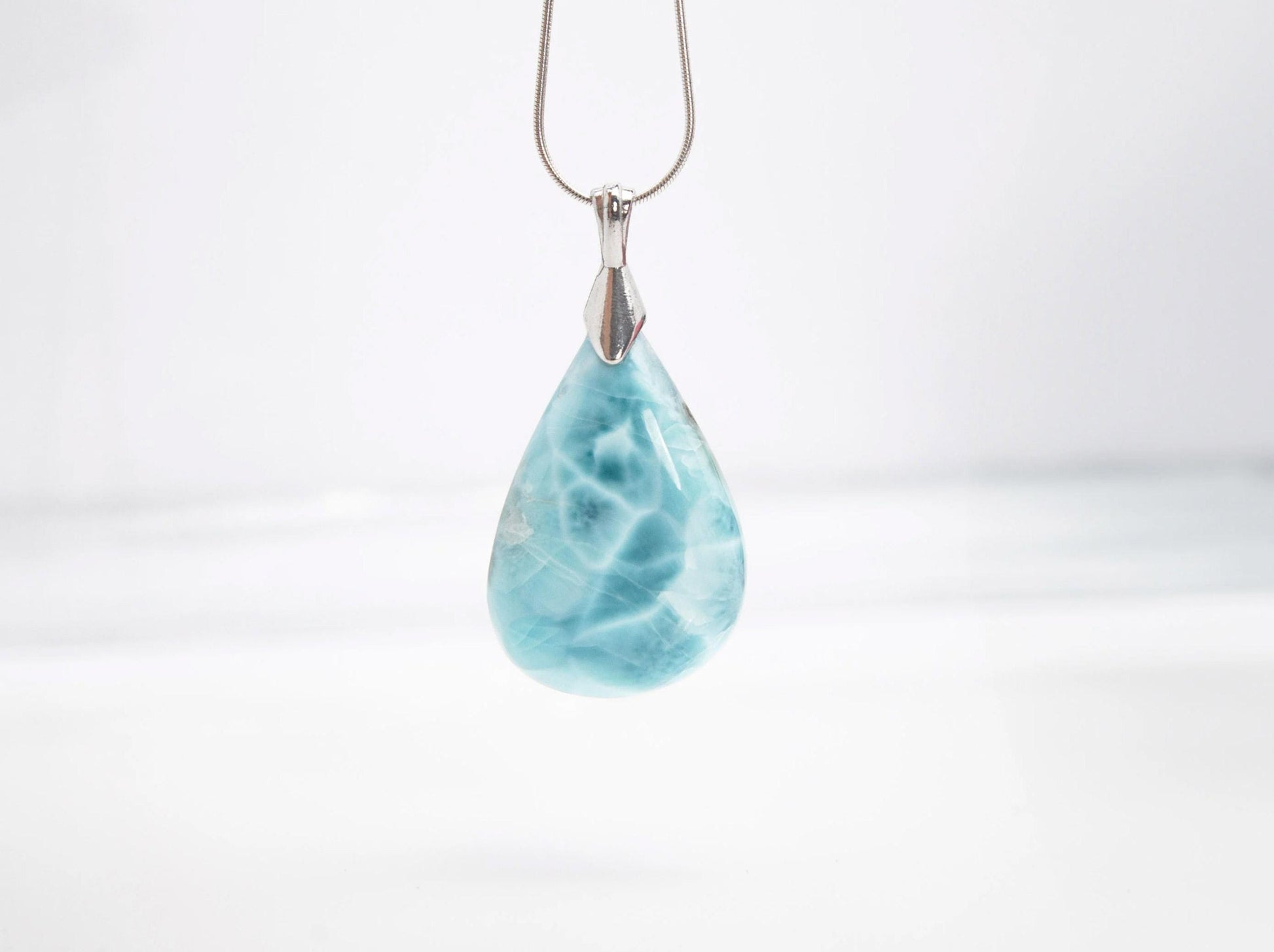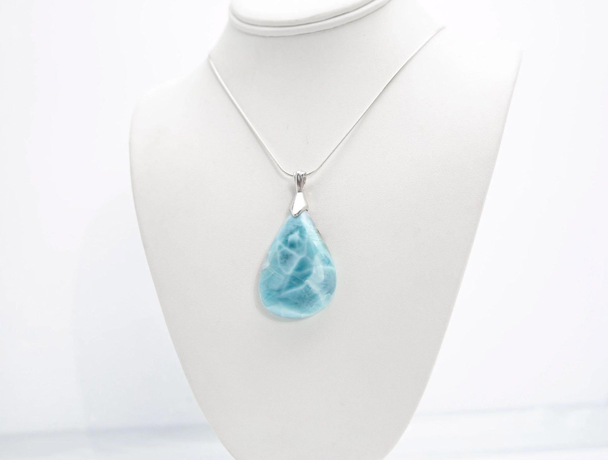 Exquisite Larimar Pear Pendant Necklace, Top Grade Larimar Stone Silver Pendant Jewelry, Christmas gift