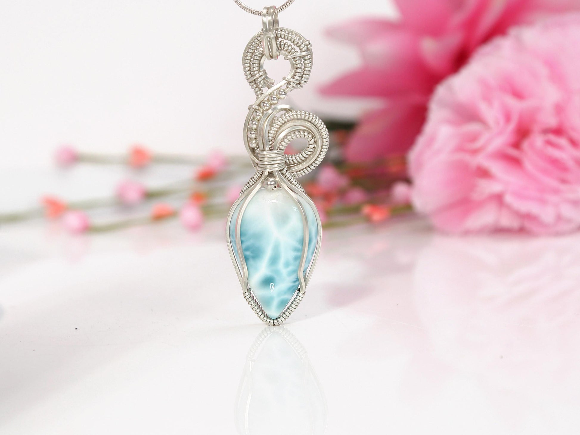 Exquisite Larimar Pendant, Silver wire wrapped Larimar necklace, Top grade Larimar, AAA Larimar, Spiral Pendant, Christmas gift