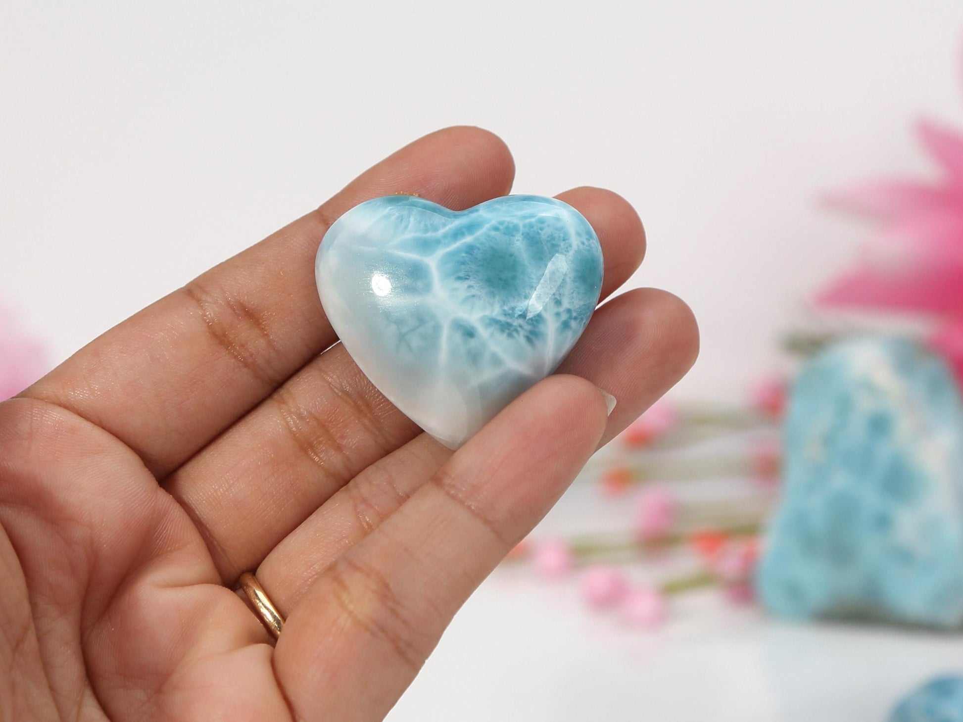 A gorgeous Larimar heart displaying a beautiful mix of oceanic patterns and blue hues. It is a perfect addition to your crystal collection or to be used for your meditation needs. 📐Dimensions: 1.3" long x 1.4" wide (33mm x 36mm) Weight: 21 grams Please allow a minor variance 📜 You will also receive an information card about the stone.