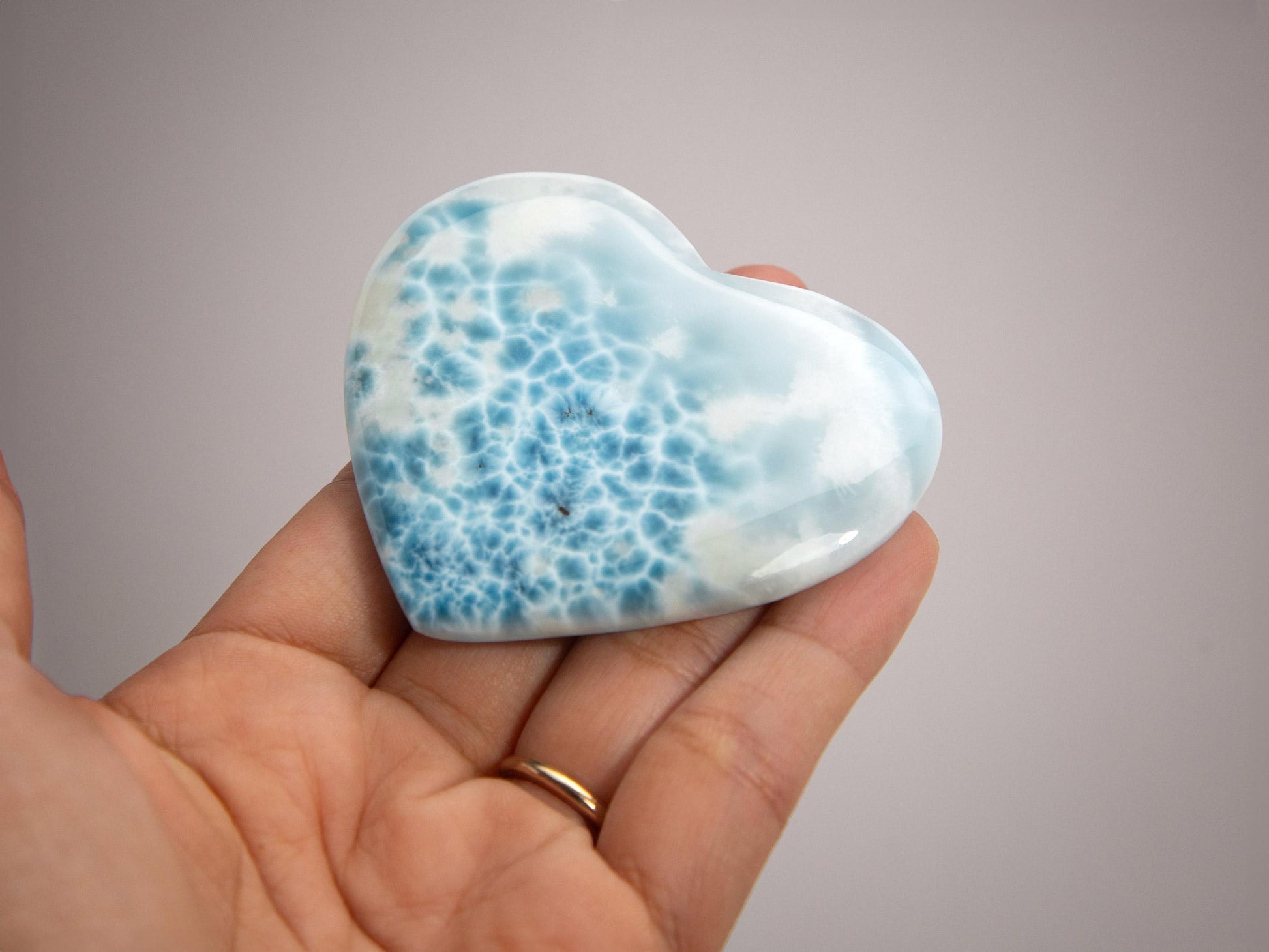 HIGH GRADE Larimar Heart, Ocean Blue Larimar Stone Heart, Larimar Palm Stone, Super Blue Larimar crystal, Christmas gift