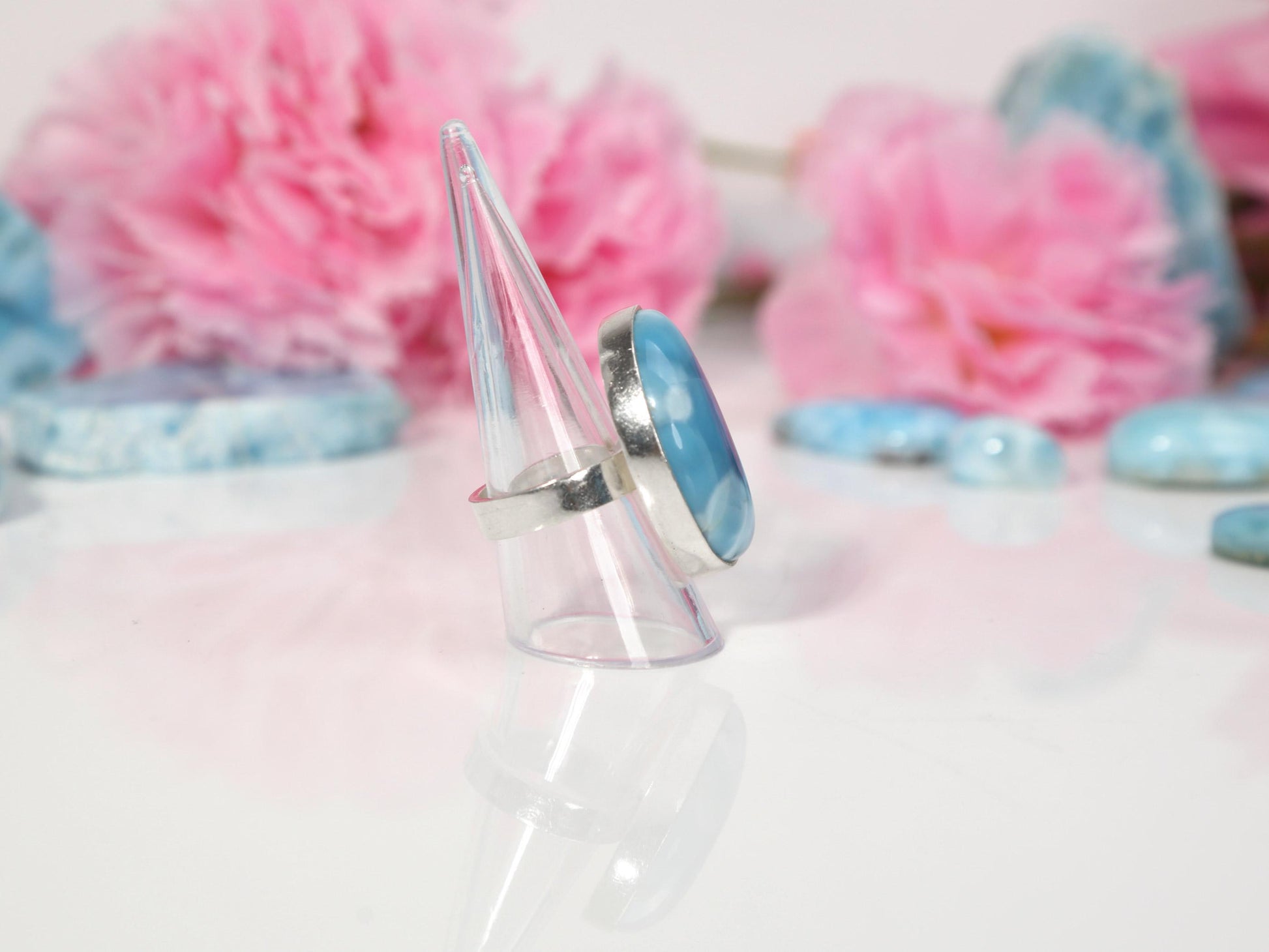 HIGH GRADE Larimar Ring, Moon AAA Larimar Ring, Ocean Blue Larimar ring, Super Blue Larimar, Christmas gift