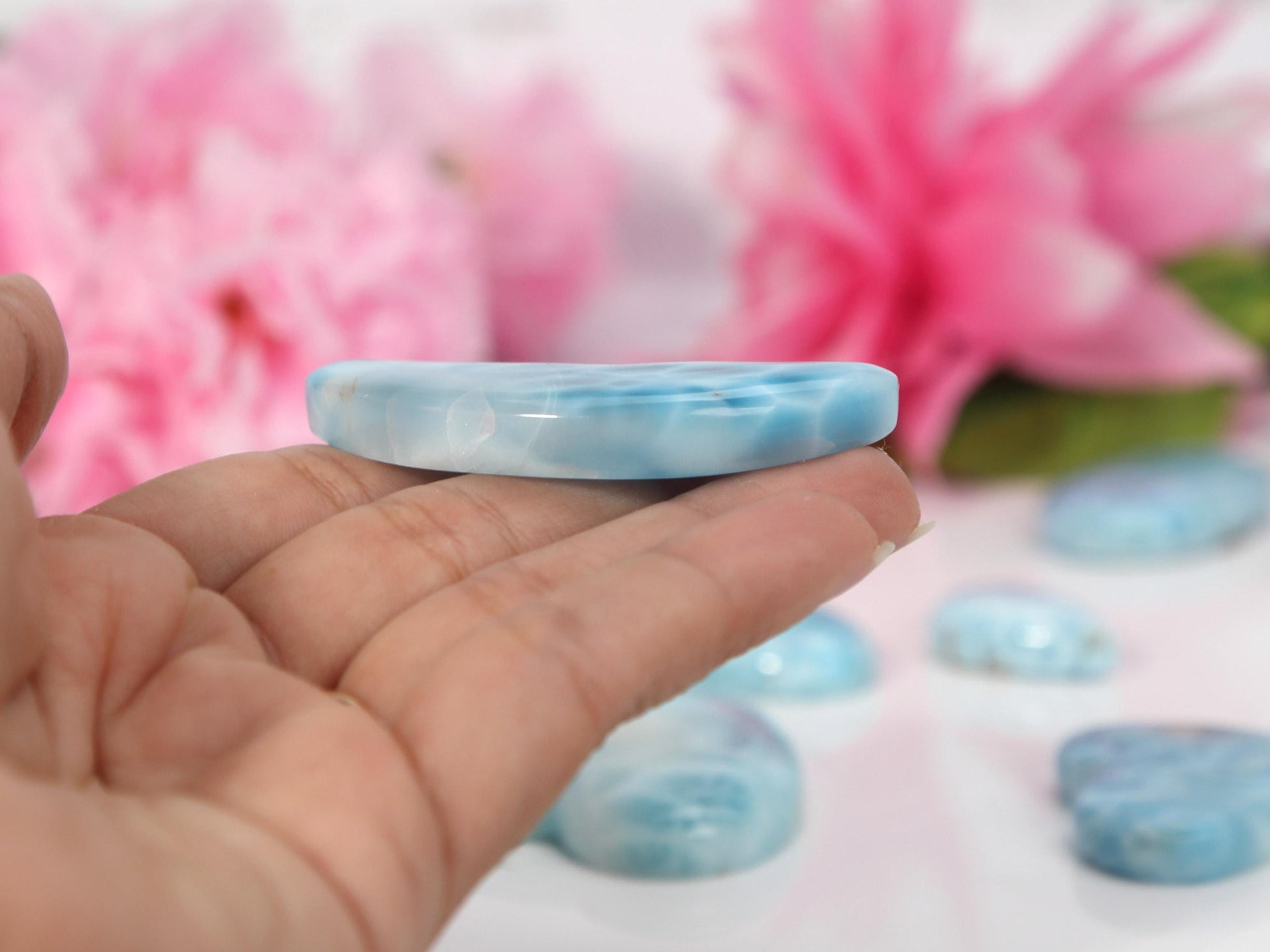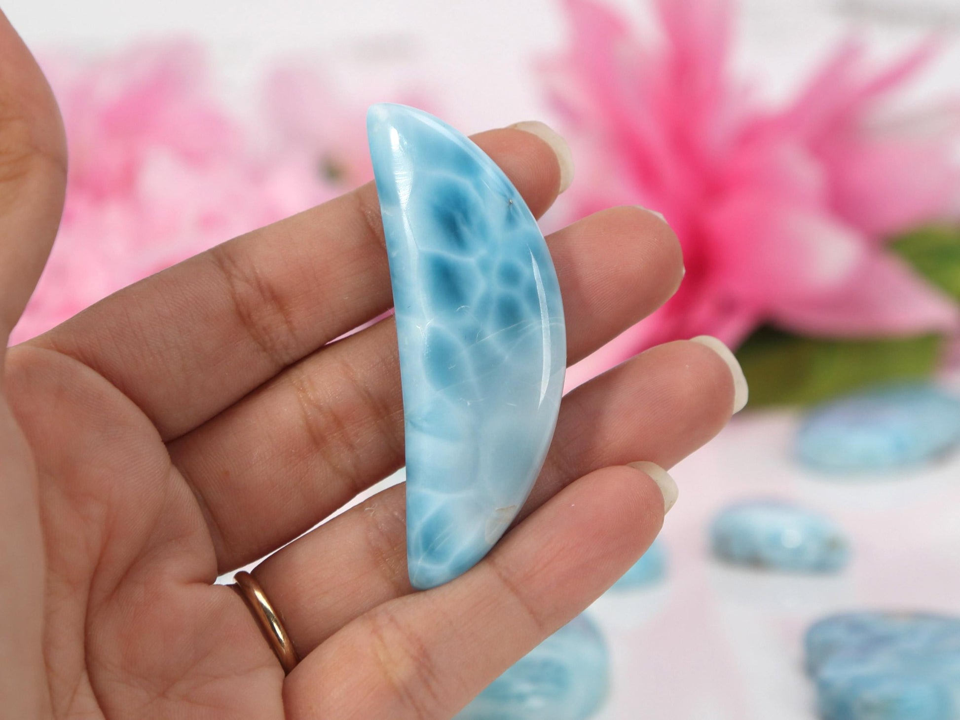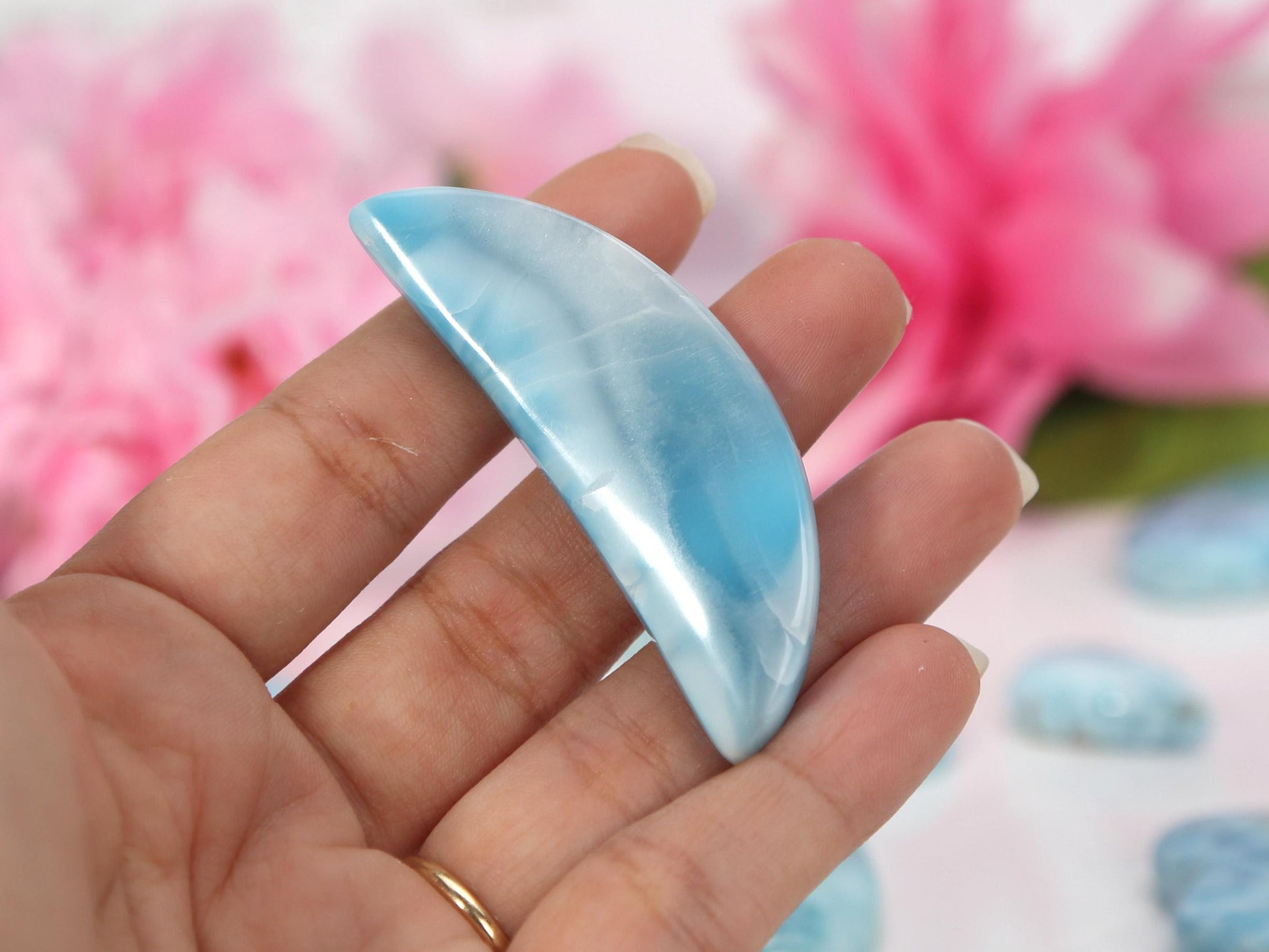 OCEAN BLUE Larimar Half-Moon, Top-grade Larimar Moon, Larimar Palm Stone, Super Blue Larimar, Christmas gift