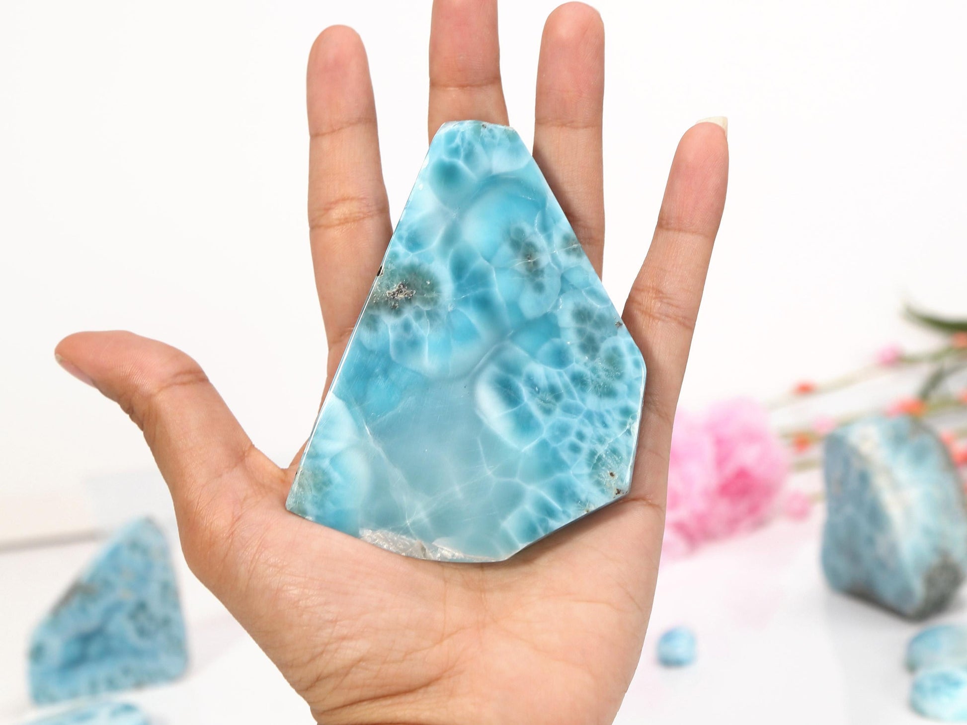 OCEAN BLUE Larimar Stone Slab, Front Polished Blue Larimar, Super Blue Larimar, Christmas gift