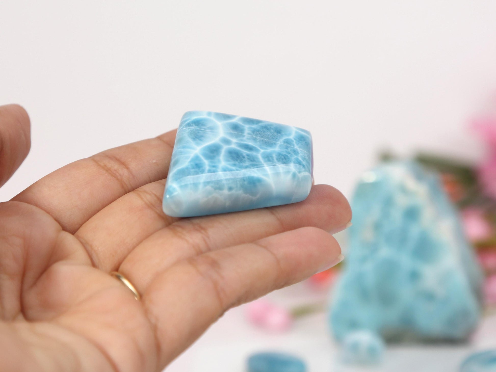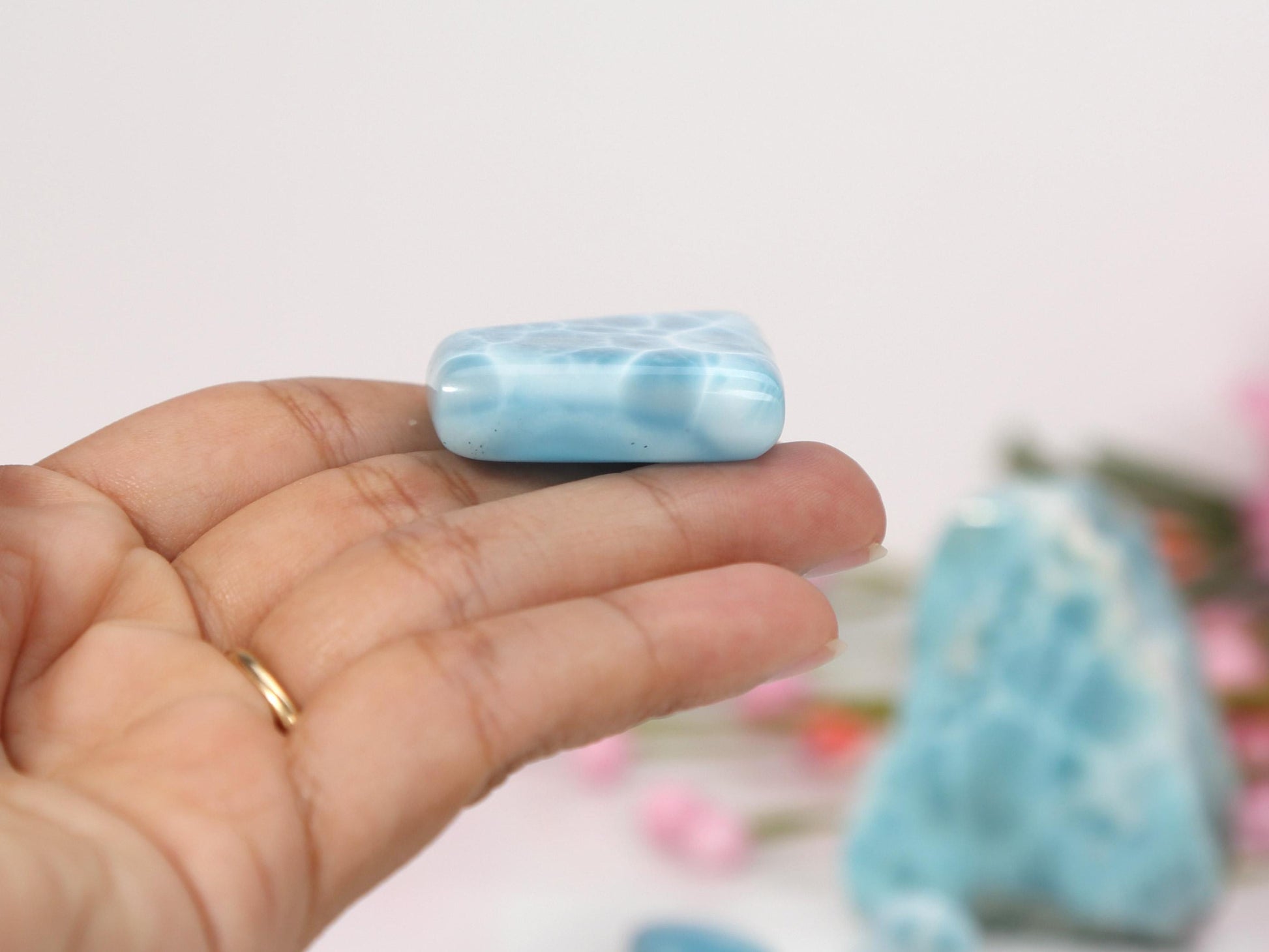 OCEAN BLUE Larimar Stone, Top Grade AAA Freeform Larimar Cabochon, Larimar Palm Stone Super Blue Larimar Specimen, Christmas gift