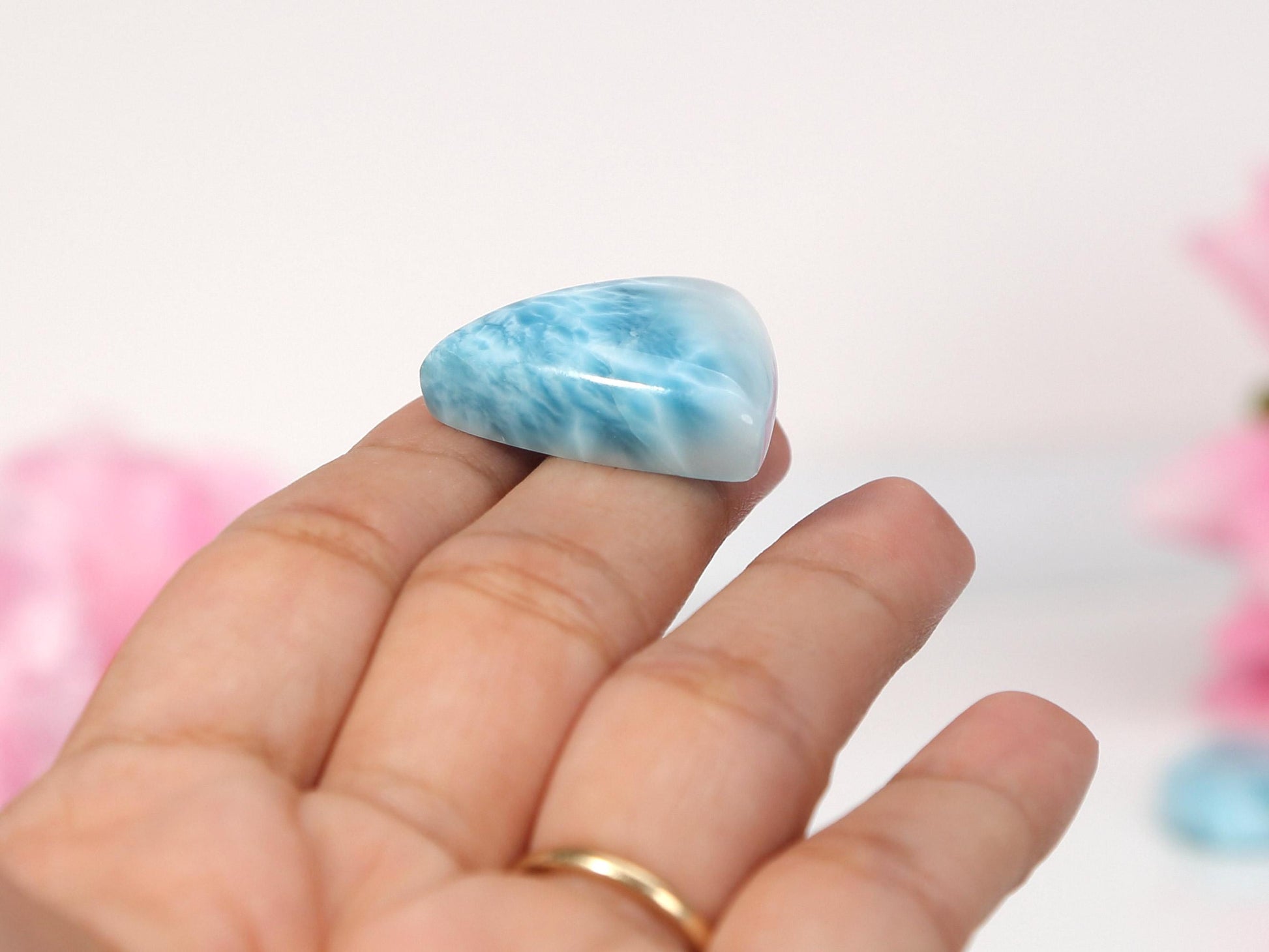OCEAN BLUE Larimar Stone Triangle, Top Grade Larimar Cabochon, AAA Super Blue Larimar, Christmas gift