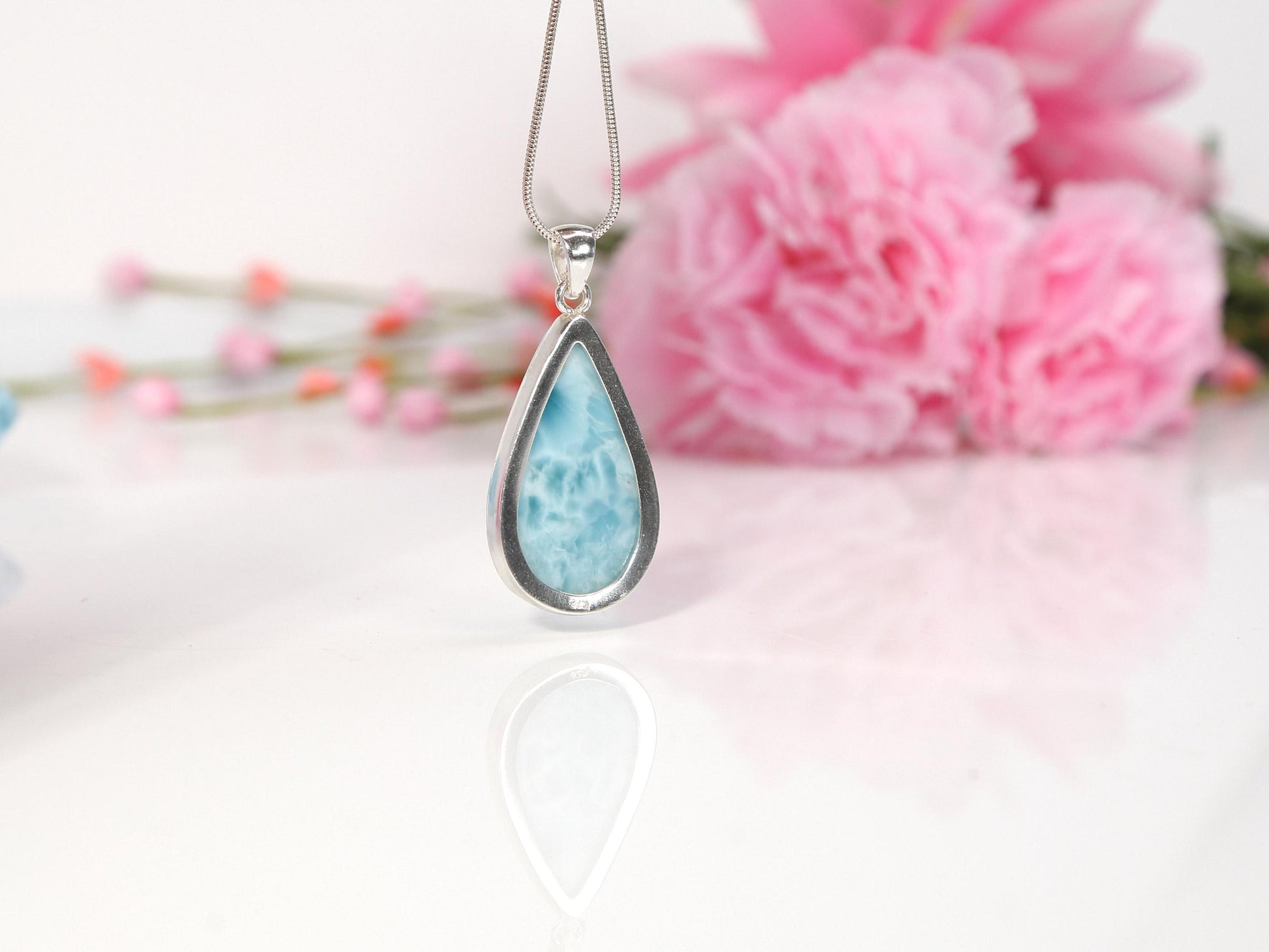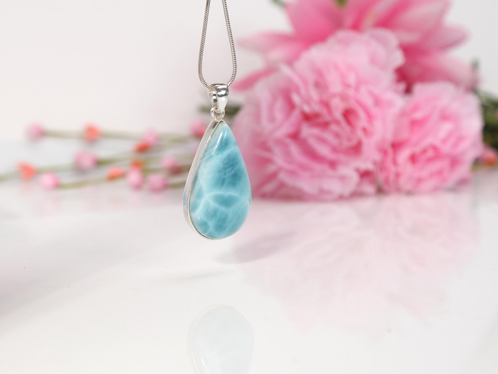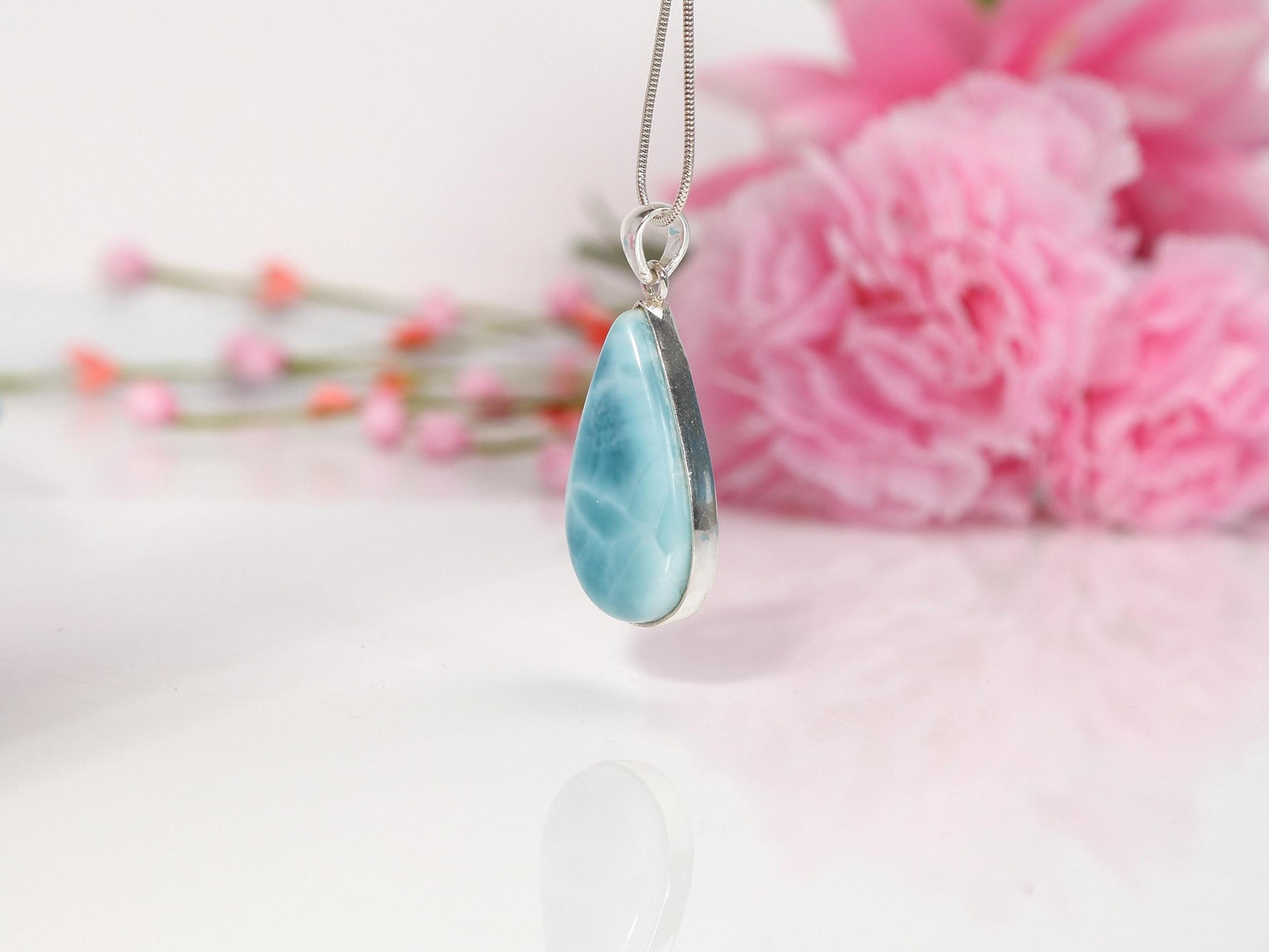 OCEAN BLUE Teardrop Larimar Pendant Necklace, Top Grade Larimar Silver Pendant, AAA Larimar jewelry, Christmas gift
